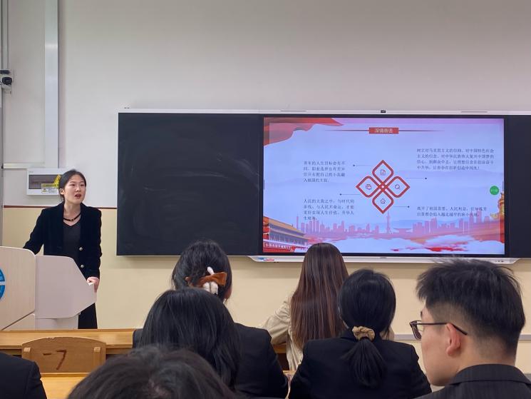 会议第一项,围绕习近平总书记五四青年节对全国广大青年寄语精神,张玉环老师进行领学。她强调,作为新时代大学生,应该认识到作为当代青年应当认真弘扬五四精神,将五四精神永远传承下去,从五四爱国运动中感受到作为青年对国家的重要和身上所肩负的责任,五四更多的意义是传承,传承五四的精神。
