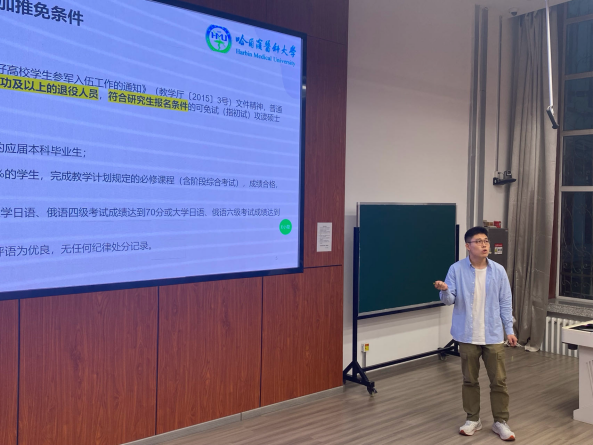 随后,2019级自律委党建部部长万山同学,以严谨、稳重的态度,为我们分享了其保研至四川大学华西医院的宝贵经验。万山同学详细解析了推免政策的具体内容,并系统梳理了推免流程的关键步骤。此外,他还深入剖析了参加夏令营的各项要求,为准备参与推免的同学提供了清晰的指导。万山同学以自身经历为基础,结合所得经验,为有志于推免的同学指明了前进的方向。