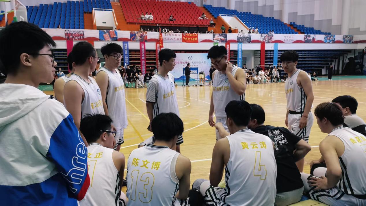 二院男篮休息时刻,探讨战术