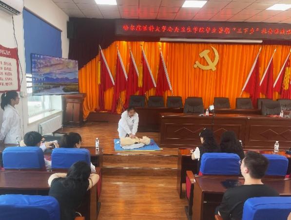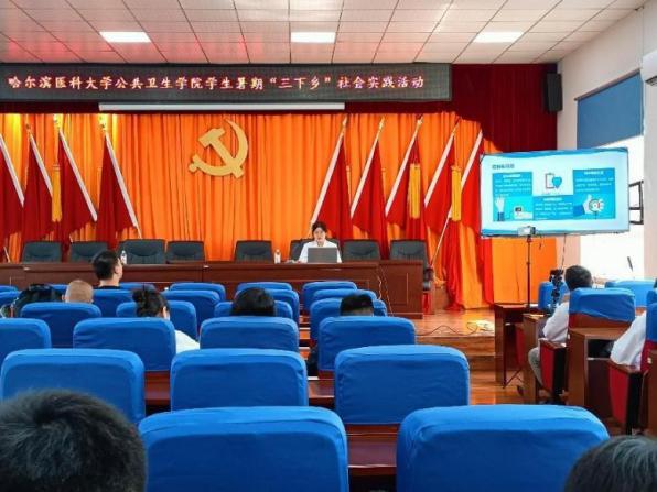 公卫学子积极践行青年的责任和担当,把传播公共卫生健康知识作为己任,把守护人民健康幸福生活作为使命。社会实践团队成员李书桐、孟昊雯向村民开展了关于儿童和老年人常见病防治的科普宣讲,具体介绍了包括水痘、手足口病、高血压、糖尿病等疾病的预防保健措施,张喆和张元柯等同学讲解了如何利用黄金时间,对患者施行心肺复苏和海姆利克法的急救措施,村民们认真聆听,有的还拿起手机进行录像学习;同时团队还进行了健康科普知识答题和分发健康宣传手册,并准备了学院的文创布袋作为精美礼品,现场反响热烈,本次健康科普宣讲也运用线上线下联动形式,在平房区委宣传部视频号“文明哈南”进行了同步直播,观看人数众多,互动良好,学生们耐心生动的讲解真正做到了让公共卫生科普知识入心入脑。