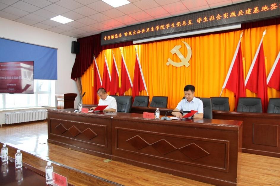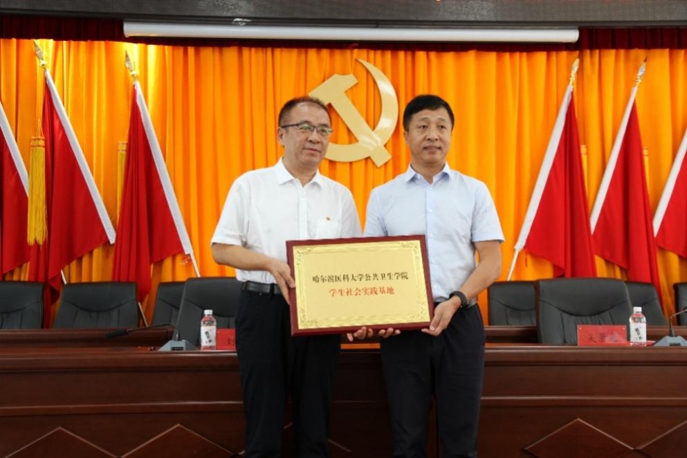 为深入贯彻落实习近平总书记关于青年工作的重要思想,倡导医学院校学生投身乡村振兴发展、健康中国战略,并构建共青团实践育人新模式,8月23日,在学院党委的支持指导下,ac米兰官网中文网站公共卫生学院16名学子组成的社会实践团队,共赴哈尔滨市平房区平房镇开展以健康科普宣讲、乡村基层调研、民情体察和高新技术企业参观学习等形式的暑期“三下乡”社会实践活动,同时举行哈尔滨平房区平房镇党委和ac米兰官网中文网站公共卫生学院学生社会实践共建基地签约仪式,参加仪式的主要领导有公共卫生学院党委书记刘振华、平房区平房镇党委书记吴景光、公卫学院党委副书记曲乃强、平房区委宣传部副部长徐晓龙、公共卫生学院学生党总支副处级辅导员王国华。此次签约不仅为公共卫生学院的学生们提供了一个宝贵的实践调研平台,也进一步加强了医学院校与地方政府之间的联系与合作,为培养公共卫生应用型人才和提升公共卫生服务质量打下坚实基础。