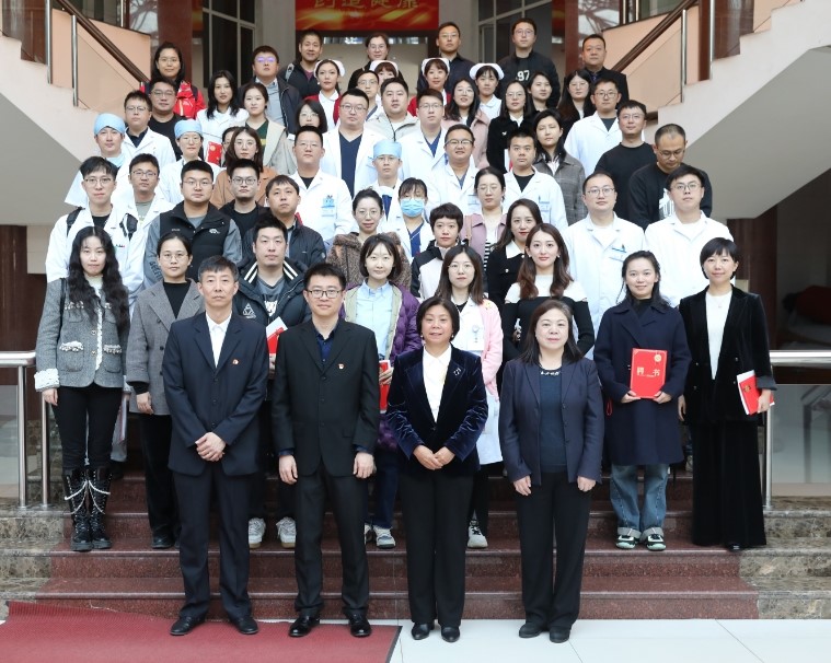 大会第二项,学生工作部主任杜明宣布对接师生名单并主持对接仪式,学生党总支书记李迎军、学生工作部副主任崔焕玉、刘仲宇为各年级兼职班主任颁发聘书。2020级、2021级和2022级医学影像学专业学生代表分别上台与兼职班主任老师代表对接并合影。