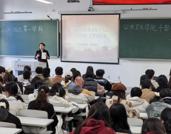公共卫生学院学生党总支于10月12日召开了本学期第二次学生干部例会和关于学习宣传贯彻习近平总书记《论教育》工作动员会。学院副处级辅导员王国华、年级辅导员刘洋、曹璨、张程,学生会、团总支、学生自律与管理服务委员会全体学生干部参加会议。