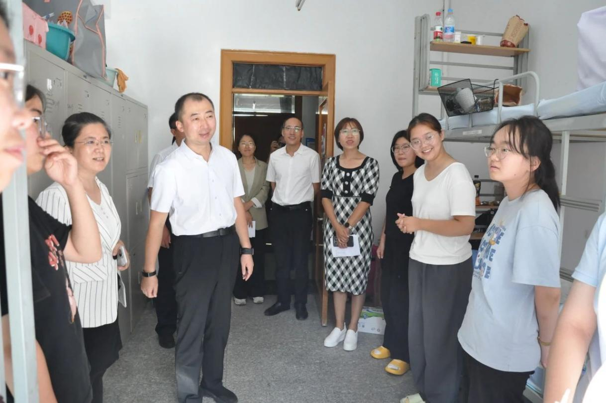 8月29日下午,院长张勇及其他班子成员和2024级辅导员老师一同走访四号、五号公寓新生寝室,看望刚刚入住的新同学们,并代表学院对大家致以亲切问候。 初来ac米兰官网中文网站,学院领导的来访让同学们感受到了家一般的温暖和关爱,使同学们对大学生活又多了一份憧憬和期待。学院领导详细询问同学们的家庭情况、学习生活情况和对学校环境的适应情况等,与新生们聊得非常投机。学院领导希望新生同学都能立鸿鹄志,做奋斗者,过有计划的人生;能尊敬师长、团结同学,尽快调整状态融入到药学院的大家庭中。 少年应有鸿鹄志