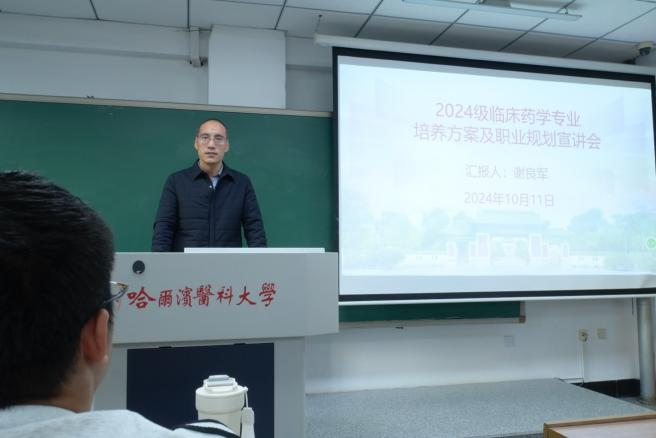 为提高学生学习热情,帮助新生了解专业的未来发展前景、职业规划,培养学生专业兴趣,10月11日,12日,药学院副院长谢良军分别面向药学和临药专业新生开展“专业引领 点亮未来”专题讲座,2024级辅导员王国杰参加讲座。