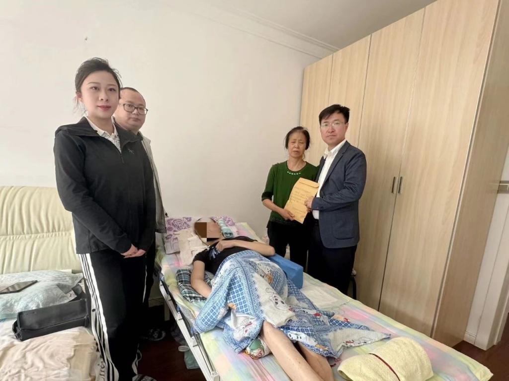 病魔无情,人间有爱,卜明的病情成为师生的牵挂。9月20日,学院副院长朱洪岩、学工办主任张晓奥与法学专业2003级学生孙铭、陈培海一行代表学院及全体师生前往齐齐哈尔卜明的家中慰问他和他的家人。卜明虚弱地躺在病床上,病情发展到已经不能开口说话,要靠鼻饲管辅助进食,卜明的父亲在卜明患病期间突发脑溢血无人照拂。朱洪岩副院长将爱心善款交到卜明母亲的手中,详细询问了他目前的身体状况及后续治疗方案,鼓励卜明和家人要保持良好心态,坚强地面对伤痛和困难,并嘱咐家属陪护时要注意多休息、加强营养。卜明的母亲感动得数次泪目,在师生一行离开后,她代替卜明写了一封感谢信。