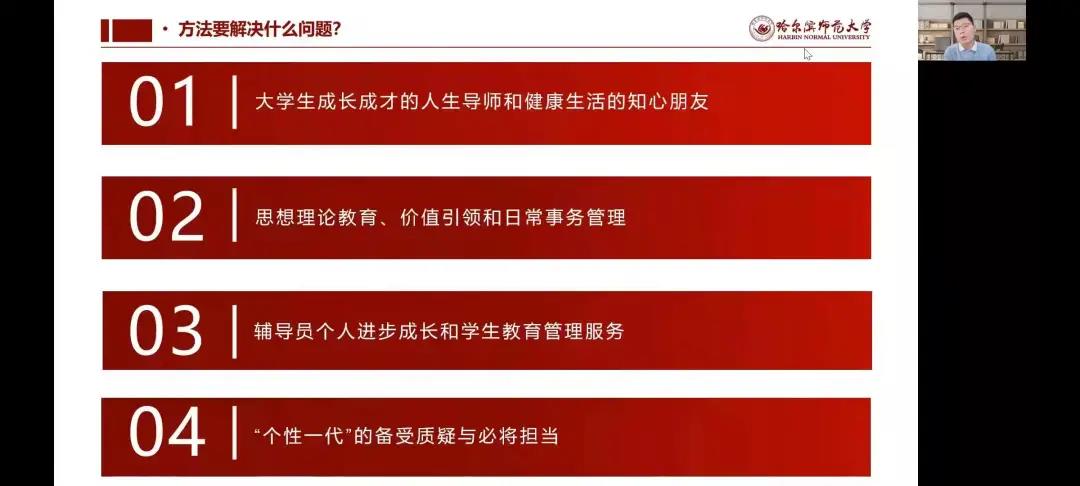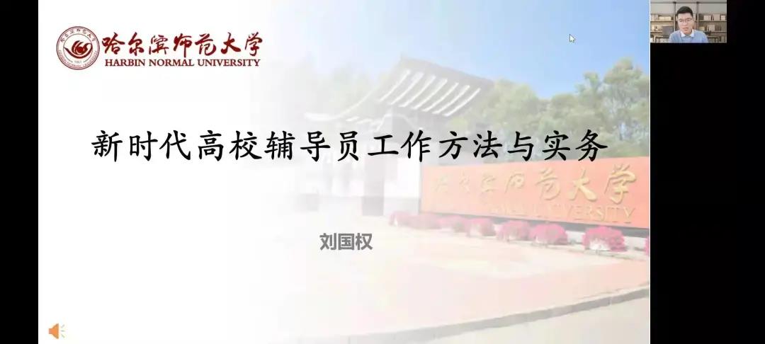 12月20日,学生工作部(处)邀请2021年全国最美高校辅导员、哈尔滨师范大学马克思主义学院辅导员刘国权老师为全校辅导员做工作技能与工作水平提升培训讲座。