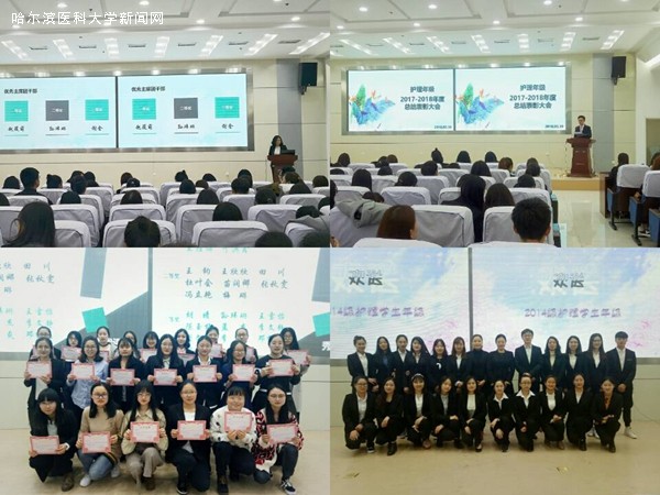 会议伊始,由学生会副主席、各部部长和团总支代表上台进行述职报告。述职报告主要包括上学期各部门举办过的活动以及对活动的总结、个人工作反思以及对未来工作的展望,通过述职报告,副主席、各部门部长以及团总支总结过去成绩、反思工作不足,为以后的工作打下了坚实的基础。会议第二项,学生会主席赵筱萌公布了护理年级学生各项获奖名单,由秘书部成员依次为获奖同学颁发了奖状并合影留念,领奖现场气氛十分活跃。随后,为护理年级2014级学生会成员举办欢送仪式。护理学生干部15级代表王钧同学和16级代表刘晓慧同学上台发言,表达了对老师和学生会团总支前辈们的感谢,提出了对护理年级学生会建设的设想并鼓励同学们向前辈学习、不断完善自我,用最好的状态来完成学生会各项工作。最后,由护理年级副主任宋安琪老师总结发言,宋老师主要提出了三点建议:1.希望学生会各部门加强自身建设,学生组织加强交流合作,形成更强的工作动力。 2.学生对自己应高标准高要求,学习为第一要务、学生活动其次。 3.学生干部对工作应做到求真务实。