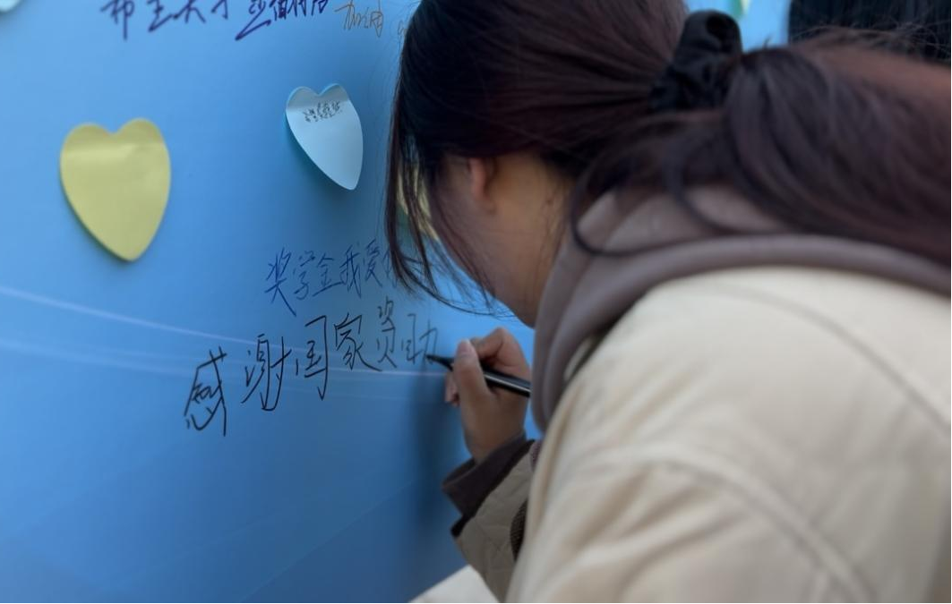 为更好了解学生的实际需求和对资助工作的期望,进一步优化资助政策和服务流程,提高资助工作的精准性和实效性。11月11日中午,学生处在食堂前广场举办“‘千言携爱行’——写下一条资助建议”活动。广泛收集学生的意见和建议,旨在深入了解学生需求,增强学生归属感,优化学生资助体系,提高资助精准度,推动ac米兰学生资助工作高质量发展。