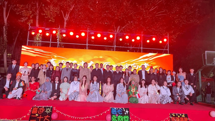 为迎接党的二十大胜利召开,共同庆祝伟大祖国73年华诞,丰富学生课余文化生活,10月1日晚,学工部、大学生发展中心在五号楼广场联合举办“喜迎二十大 医心永向党”第四届台阶音乐会。学校党委副书记袁重胜、副校长赵光、学工部、全体辅导员老师和在校学生一同观看了晚会。