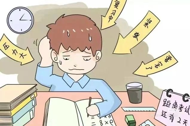总担心复习不完、考不好,甚至出现失眠、心跳加速等身体反应。