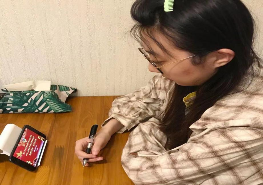 张斌书记对两会精神的讲解,让我深刻意识到国家对高质量教育体系建设的重视,提出“培根铸魂,启智润心”的理念,做好高校毕业生就业工作,同时主张打造复合型人才。作为一名正在接受教育的博士研究生党员,我十分欣喜于国家给予的这份细致的关爱。这同时也说明中国正在从数量时代迈向质量时代。站在“两个一百年”的交汇点,蓝图已绘就,奋进正当时。你我自当将理想与祖国相依,勇做走在时代前列的奋进者、开拓者、搏击者!