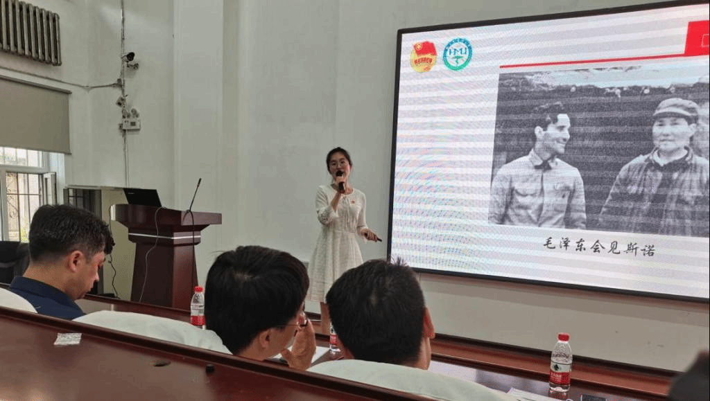 第一位宣讲的同学是来自人文社会科学学院的2021级人文医学硕士研究生张金子同学,她用娓娓道来的声音向我们讲述了《红星照耀中国》的作者埃佳德·斯诺排除万难来到延安,亲眼见证革命红区人民生活的故事。在这本书里,我们扫清历史的烟尘,与一个个年轻的红军士兵对话,看他们如何依靠信仰克服生活上的困难,在革命春风的吹拂下,从星星点点的火星,燃烧成洗练新中国的重生浴火。万水千山不忘长征精神,我们必将沿着这条看不见的新征途,继续走下去。