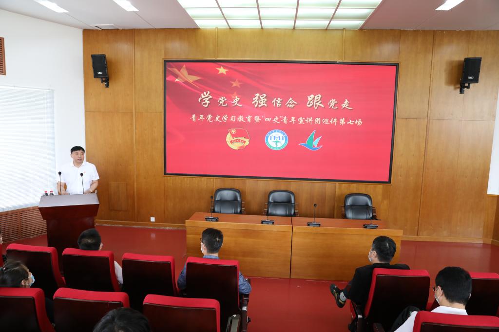 6月18日,ac米兰官网中文网站团委与医院团委联合开展的“学党史、强信念、跟党走”青年党史学习教育暨“四史”青年宣讲会在我院办公楼5楼大会议室召开,医院党委书记赵长宏、学校团委书记王曦、院党委副书记胡洪涛、院纪委书记袁贵生、院党委委员、学生党总支书记李迎军,学校团委青年宣讲团指导教师姜欢、院团委书记孙少星、以及我院各职能部门负责人和年级辅导员、全院青年团员、学生代表等现场参加了本次活动,其他人员采取线上方式收看。