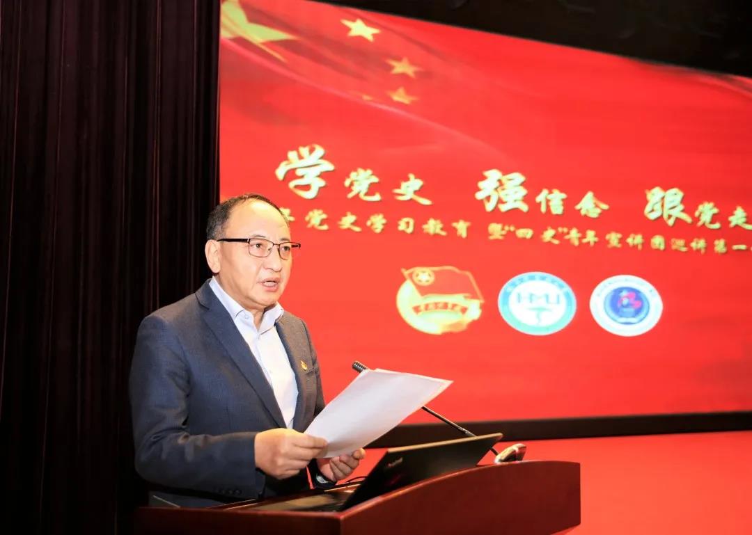 赵长久书记在大会上致辞,着重强调了学习党史要做到以下四点:要始终牢记初心和使命,要学会敢于牺牲和担当,要善于对标反省和自警,要注重相互统筹和结合。青年师生要切实提高政治站位、统一思想认识,不断增强“四个意识”、坚定“四个自信”、做到“两个维护”。