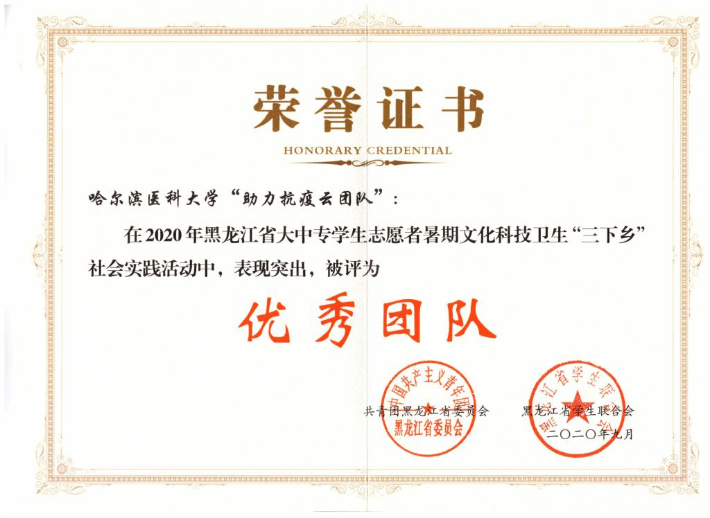 在ac米兰官网中文网站团委的号召下,经附属肿瘤医院李迎军书记、杜明书记、刘仲宇老师的悉心指导,“助力抗疫情云团队”通过线上部署,于当地投身抗疫志愿服务。“云”上携手,聚光成炬,实践活动遍及7个省份12个县市3个村庄。散布在全国各地的队员们连点成线,聚线成面,将热情和决心联结成网,为祖国输送青年力量。被团中央评为2020 年全国大中专学生志愿者暑期 ”三下乡“社会实践活动优秀实践团队。