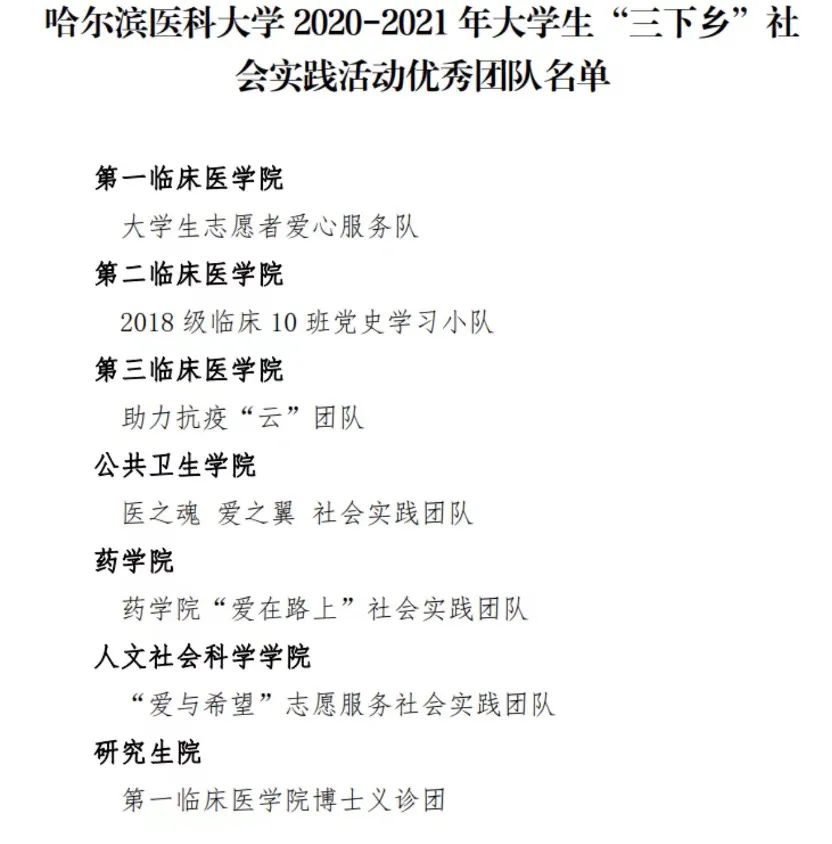 过去的一年,ac米兰青年志愿服务工作取得了可喜的成绩,校青年志愿者协会在全国学雷锋志愿服务“四个100”先进典型宣传推选活动中被推选为最佳志愿者服务组织;附属一院实验诊断团支部、方舱实验室成功入围黑龙江省志愿服务“五个100”优秀志愿服务组织评选活动;附属三院助力抗疫云团队荣获全国大学生“三下乡”社会实践活动优秀团体荣誉称号;校团委组建的“四史”青年宣讲团荣获优秀项目荣誉称号;人文社会科学学院张晓奥被授予第十三届中国青年志愿者优秀个人… 这些光荣的个人和集体就是无私奉献的代名词、是积极向上的正能量。