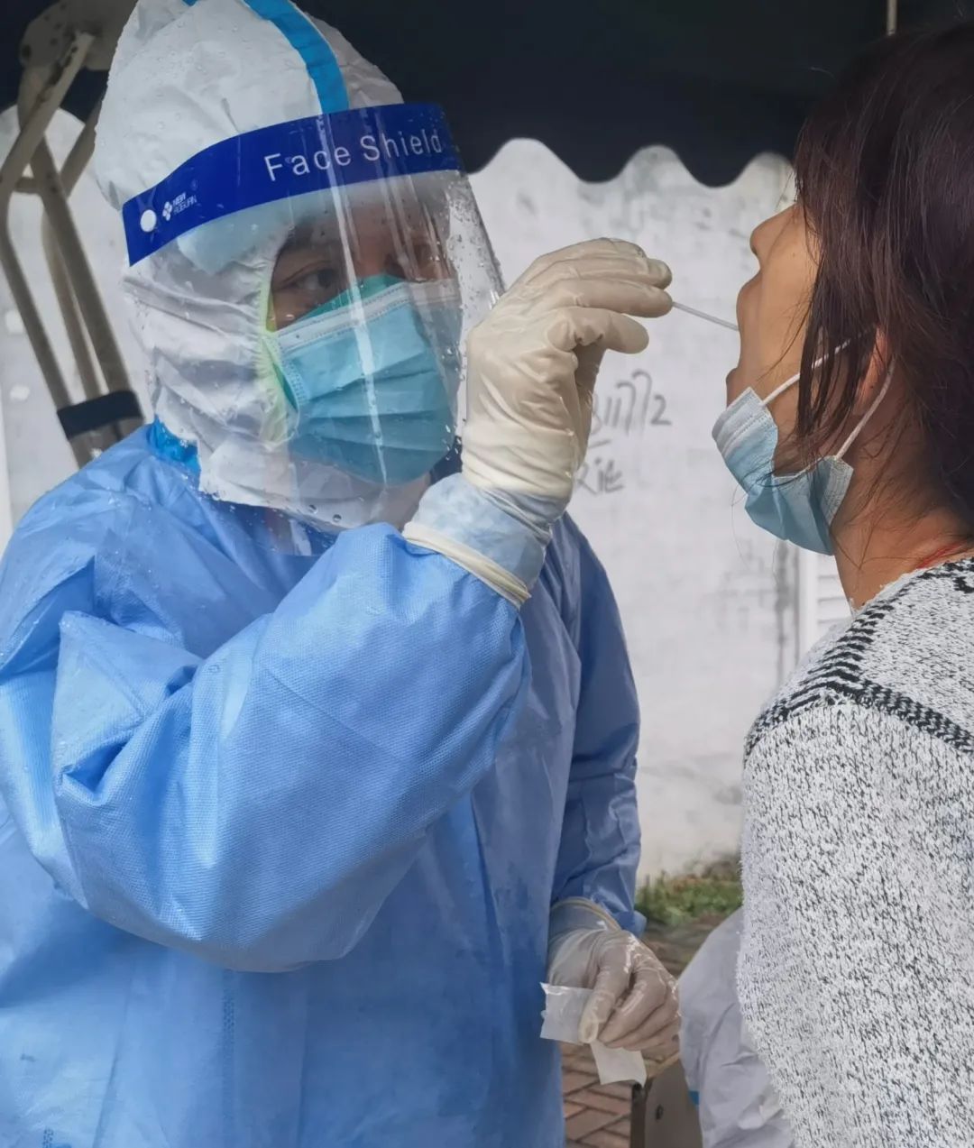 在单位,由于我在支援武汉期间积累了很多经验,所以回到工作岗位以后,在护士长的支持下我承担了科室人员穿脱防护服和核酸采集的培训工作。同时也参与了全院职工日常核酸采集工作,包括麻醉科、手术室、后勤人员、返校学生等等。