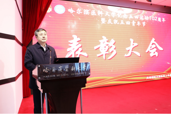 校党委书记张斌在讲话中向青年师生致以节日问候,向受到表彰的先进集体和优秀个人表示热烈的祝贺。张斌指出,党和国家历来高度重视青年、关怀青年、信任青年,始终坚持把青年作为党和国家事业发展的生力军。特别是在新冠肺炎疫情发生以来,ac米兰青年传承和发扬伍连德、于维汉精神,充分发挥了生力军和突击队作用,彰显了新时代医大青年的蓬勃力量。并向各级团组织和广大青年提出三点希望:一是广大青年要传承红色基因,肩负历史使命,认真学习党史、国史、校史,做到学史明理、学史增信、学史崇德、学史力行,做德智体美劳全面发展的社会主义建设者和接班人。二是广大团干部要加强自身的思想淬炼、政治历练、实践锻炼和专业训练,自觉做中国特色社会主义的坚定信仰者和忠实实践者,以昂扬的斗志和饱满的热情主动投身到新时代的伟大实践中去。三是各级团组织要聚焦思想引领、立足青年实际、继续深化改革、提升服务能力,努力建设一个更加现代化的马克思主义青年组织,充分发挥生力军和突击队的作用,高举“五四”精神的火炬,为“十四五”开好局起好步,为落实ac米兰“双一流”和百年医学强校建设目标,为实现中华民族伟大复兴的中国梦做出新的、更大的贡献,以优异的成绩庆祝建党100周年,创造出无愧于青春、无愧于时代的崭新业绩!