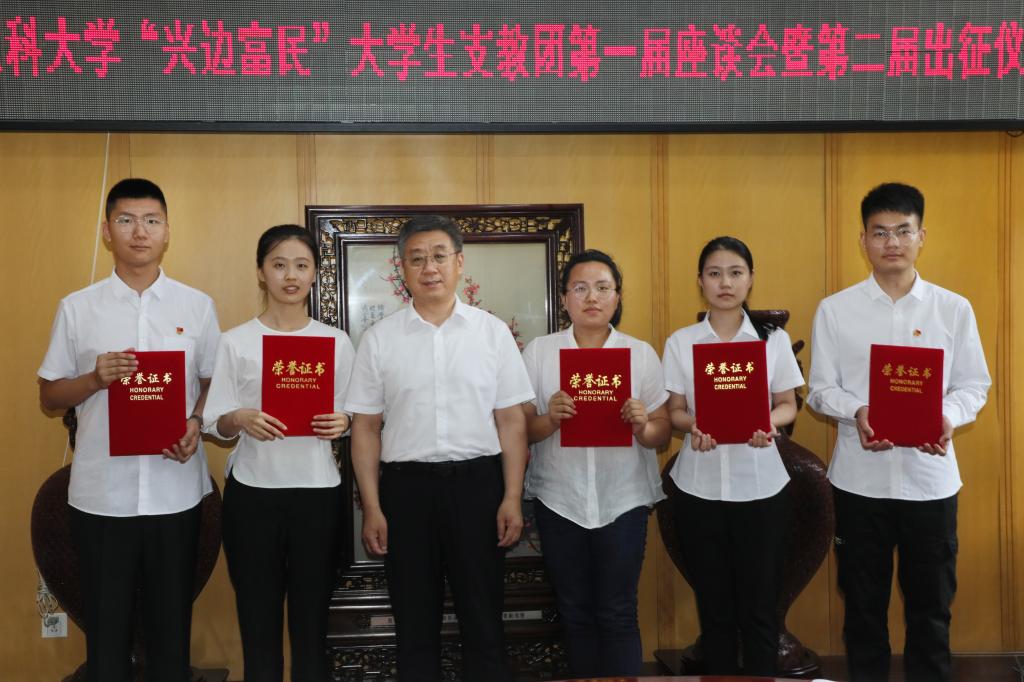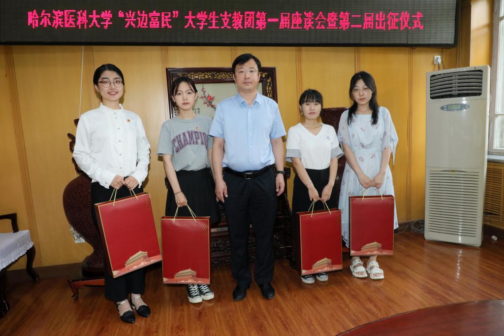 为贯彻落实团省委、省教育厅、省财政厅、省人力资源和社会保障厅、省民族宗教事务委员会五部门联合发文《关于印发<关于黑龙江省青年志愿者助力兴边富民计划大学生支教团的实施方案>的通知》要求,7月21日校团委在主楼二楼大会议室组织召开了ac米兰官网中文网站“兴边富民”大学生支教团第一届座谈会暨第二届出征仪式。校党委副书记袁重胜、副校长赵光、副校长许超千、学校宣传部、教务处、研究生院、学生处、马克思主义学院、相关学院主管领导、学院团委书记、第一届支教团成员、第二届支教团成员、导师代表参加了本次会议。会议由团委书记王曦主持。