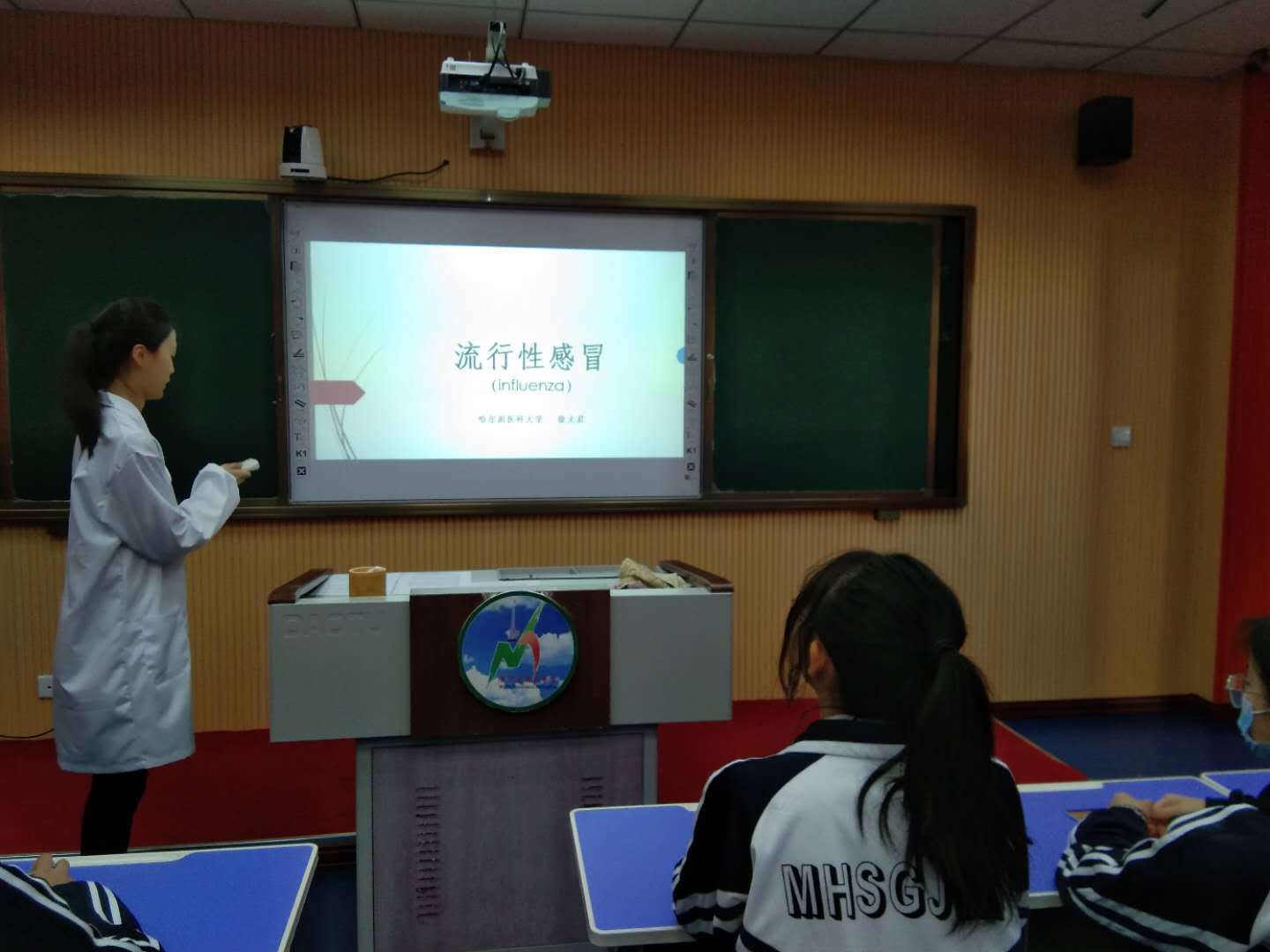 来到这里之后我尝试过很多新的工作。我本科是临床医学专业,根据学校复学后对疫情防控的需要,我一开始担任校医的职务,负责新冠肺炎防控相关工作;辅助另一名校医在校园内实现全校师生的体检工作,数据的录入和统计分析;配合当地疾控中心对在校学生进行结核病防治宣传,发放冬季传染病防控知识问卷调查。通过大学期间老师们在专业知识上的讲解,学以致用并对同学们进行关于流感等冬季传染病预防的普及和讲座,得到了校领导的认可和赞许。
