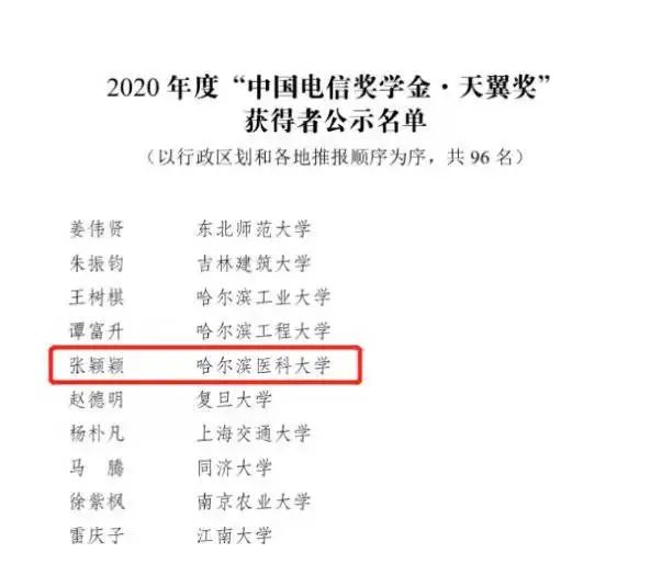由共青团中央、中国电信集团有限公司、全国学联联合开展的2020年度“中国电信奖学金”遴选工作已经收尾,获得者名单现已公布,ac米兰第二临床医学院2017级临床医学(“5+3+X”一体化)于维汉班张颖颖荣获“中国电信奖学金·天翼奖”。