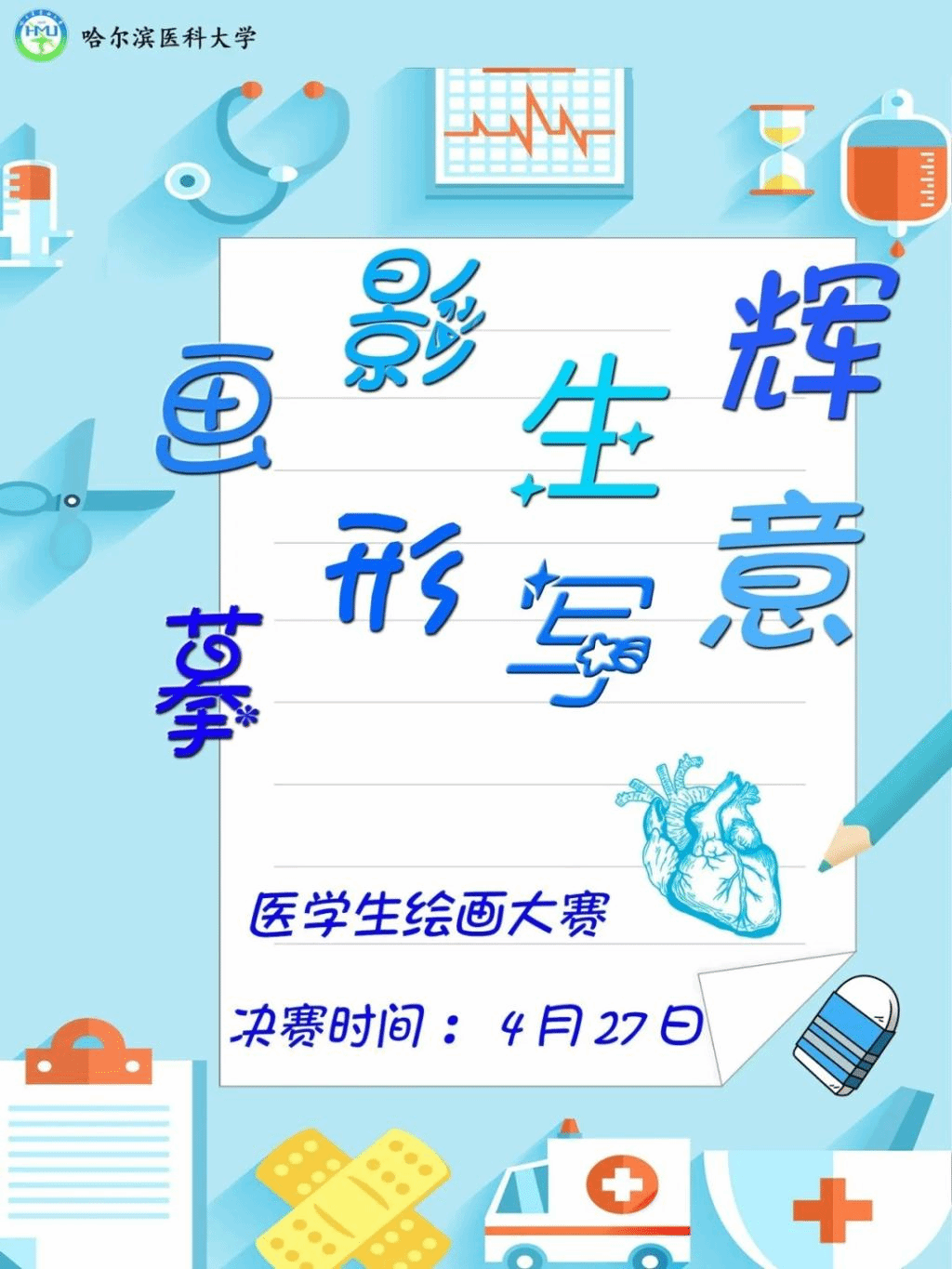 本活动旨在通过同学们分享自己在日常生活中与医学相关的创作,增加同学们对医学的兴趣,传播积极向上的校园文化氛围,在推动和丰富校园文化的同时,营造和谐的校园环境。