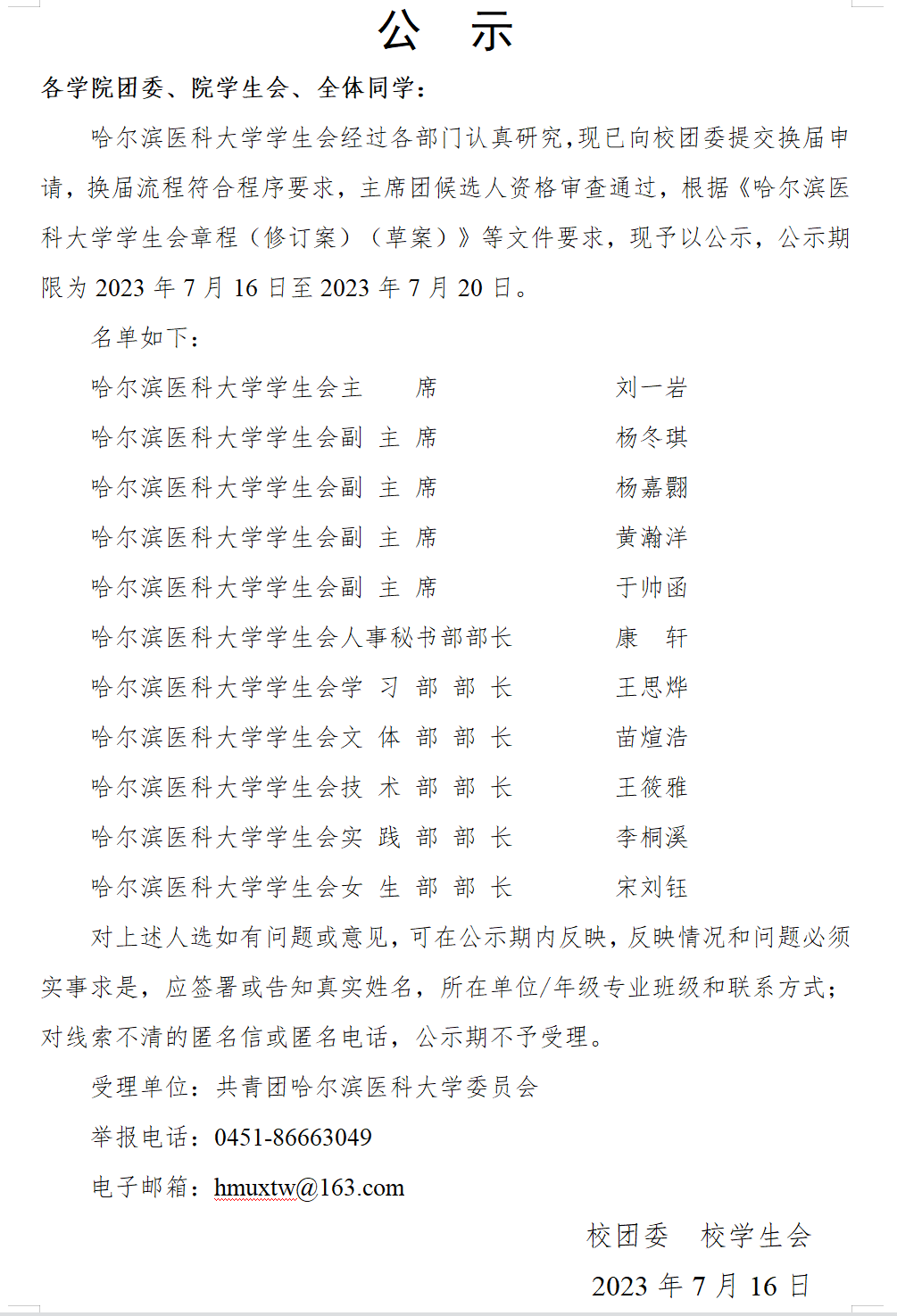 ac米兰官网中文网站学生会经过各部门认真研究,现已向校团委提交换届申请,换届流程符合程序要求,主席团候选人资格审查通过,根据《ac米兰官网中文网站学生会章程(修订案)(草案)》等文件要求,现予以公示。