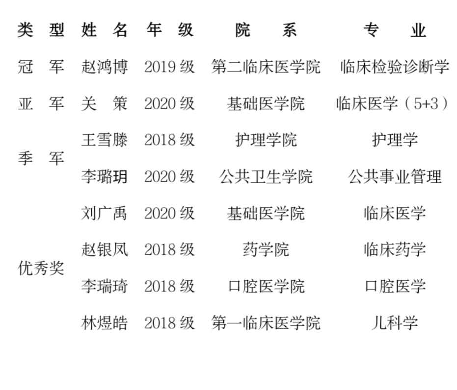 经过初赛的激烈角逐,共有八位选手进入决赛。决赛于11月22号在大学生活动中心四楼如期举行。通过“音悦年华,声而不凡”“好音相伴,声译经典”“声临其境,泠泠入耳”三个环节,分别考察选手对自行准备的素材、经典影视片段、传媒自创剧本的配音能力。最终获奖结果如下: