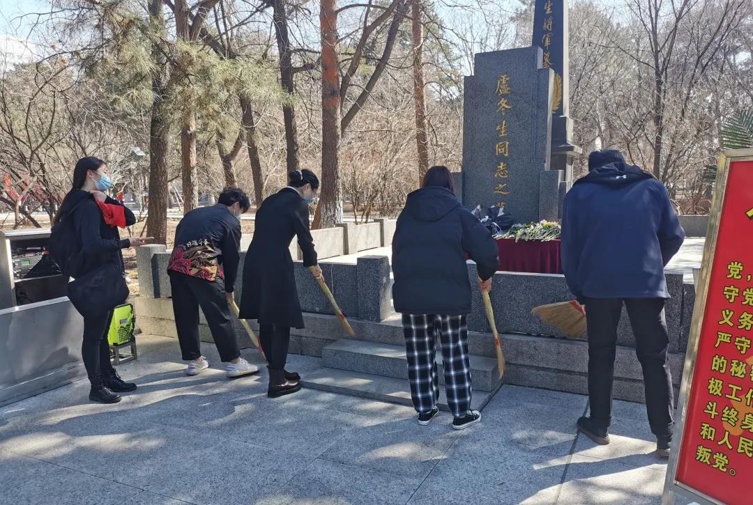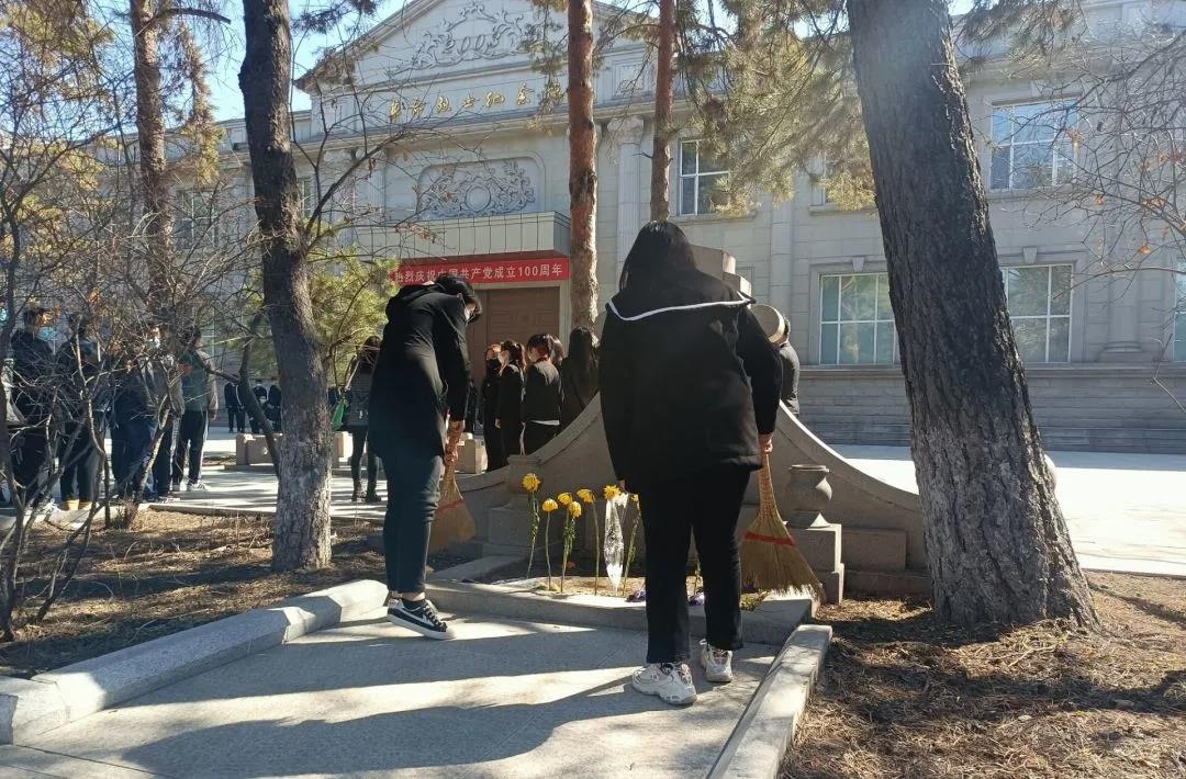 学生代表有秩序地用扫帚清扫烈士陵墓,并对周围的杂草进行清理。悼念英雄,铭记历史,药院学子将追随先辈的脚步,为祖国建设尽心竭力,奋勇向前。