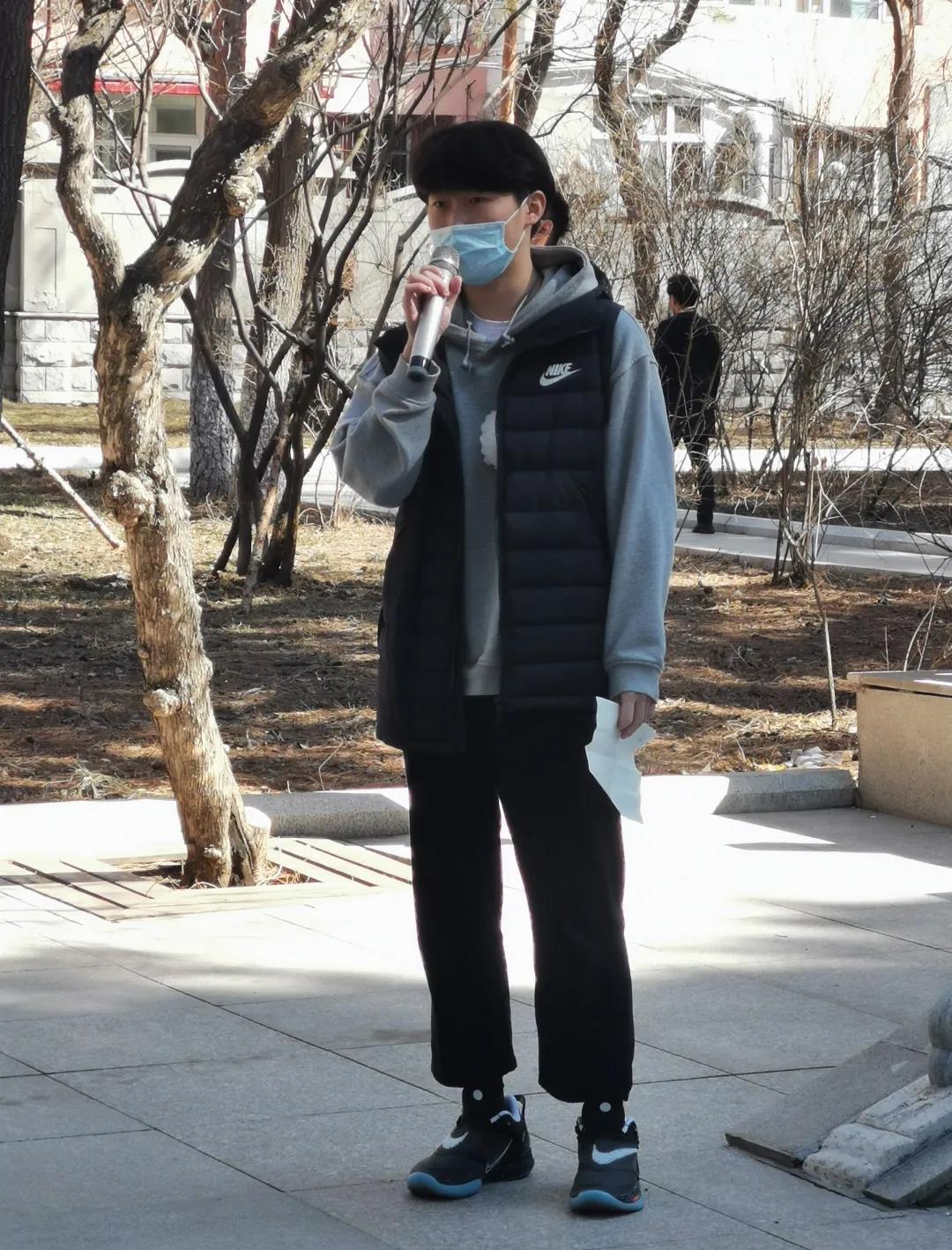祭扫结束后,全体学子齐唱国歌。随后,本科党员代表孙丽立蕊进行发言,她说自己作为中共预备党员,要牢记使命,用真才实干回馈祖国与社会。用先烈不怕牺牲,敢为人先的精神激励自己,无愧于自己党员的身份。