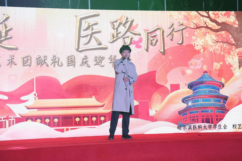 9月30日18时,由校学生会和校艺术团承办的“盛世华诞 医路同行”国庆晚会在5号楼广场拉开帷幕。校艺术团成员用精彩纷呈的演出,将医大学子心心相连,晚会高潮迭起,赢得阵阵掌声。舞蹈组带来的《采薇》《Buttons》热情奔放,彰显青春活力;器乐组和声乐组带来的歌曲《玫瑰少年》《Flower》《如果可以》等悠扬轻快,青春气息扑面而来;表演组带来的小品《小阳有话说》别出心裁,为大家带来欢声笑语;06乐队热情似火,点燃全场,为晚会画上圆满句号。
