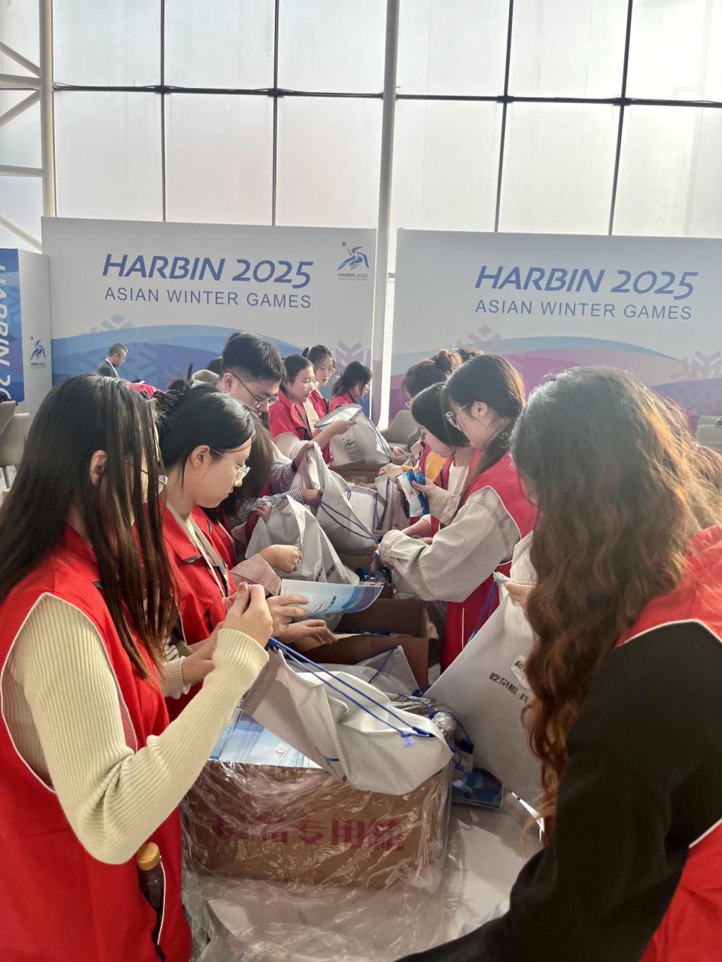 “撸起袖子加油干,会场里的大家都热情似火。”一折一扣,一个充满冰雪元素的储物箱便完美成型,将储物箱填入现场观众坐席,让每一个位置都洋溢着蓬勃的亚冬活力,在制作并填入储物箱的过程中融入着志愿者们细致入微的心意与热情。