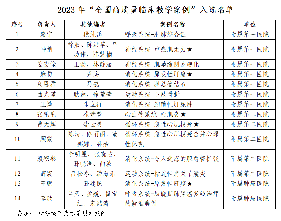 近日,中华医学会医学教育分会、全国医学教育发展中心联合发布《关于公布2023年“全国高质量临床教学案例”入选名单的通知》。经资格审查、专家会议评审、评审委员会核定及公示,ac米兰共14项案例成功入选。其中5项被遴选为“示范展示案例”,已被全国医学教育发展中心纳入“中国医学教育案例库”,面向全国高校推广使用。