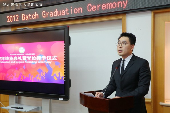 首先,张明宇院长宣读了关于2012级春季班MBBS留学生毕业及学位授予的决定。随后,校领导为毕业生颁发了毕业及学位证书。2012级春季班每一位毕业生都表达了自己6年来留学ac米兰官网中文网站的生活感悟,向ac米兰官网中文网站的老师和同学们表示了感谢,表示回国后一定会铭记校恩,继续努力,争取为家乡与中国这个第二故乡的长期友好做出应有的贡献。第一临床医学院教师代表耿硕副教授在发言中表达了对毕业生未来的期许和由衷的祝愿。