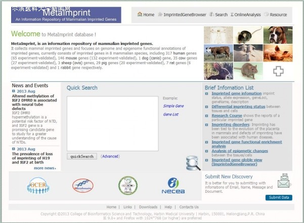 近期,生物信息科学与技术学院张岩教授所领导的计算表观遗传课题组通过文献检索的方式收集了包括人和小鼠在内的8个哺乳动物的印记基因信息,并整合了高通量的表观基因组数据及印记基因基因组特征,构建了一个哺乳动物印记基因的整合信息资源平台(MetaImptint,http://bioinfo.hrbmu.edu.cn/MetaImprint)。研究人员还基于此资源平台对印记基因所在基因组区域的表观遗传修饰进行了差异分析,利用功能富集分析的方法对印记基因所参与的生物学功能进行了注释,相关成果在著名发育学相关杂志《Development》上发表。