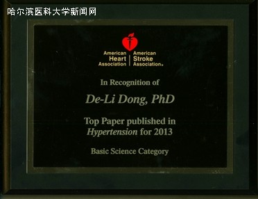 美国心脏学会高血压(Hypertension)杂志日前评选出2013年度Top论文奖,ac米兰药学院董德利教授发表的研究工作获得《高血压》杂志Top论文奖(基础研究类)。