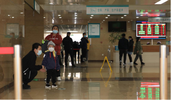 一名小朋友正在儿科诊室外等待就诊