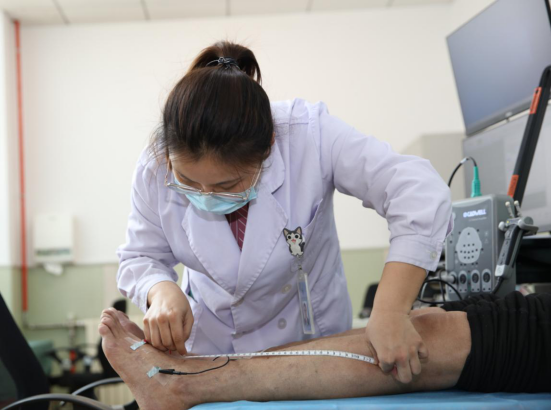 肌电室内,医生仔细为患者测量