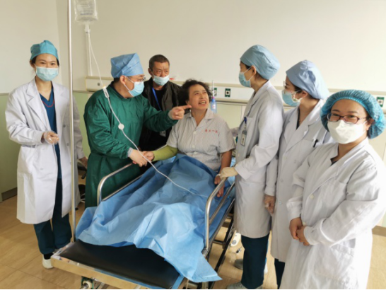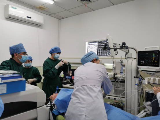 支气管镜取石采用何种麻醉方式呢?于世寰带领张春玲医生、王曼医生及吴昊岚技师的呼吸内镜介入治疗团队和石景辉教授、刘淑杰副主任医师等人的麻醉团队进行联合会诊。“局麻下支气管镜检查,患者清醒,镜身对气管粘膜的刺激和操作给患者带来强烈的呛咳及恐惧,对合并心血管疾病和重度肺功能下降的患者,出现严重心律失常和呼吸功能衰竭的可能性加大。”石景辉介绍,全麻下行支气管镜检查已广泛得到认可,但麻醉实施有巨大风险,没有广泛开展,众人对麻醉方案进行充分论证,制定了详细周密的应急预案。
