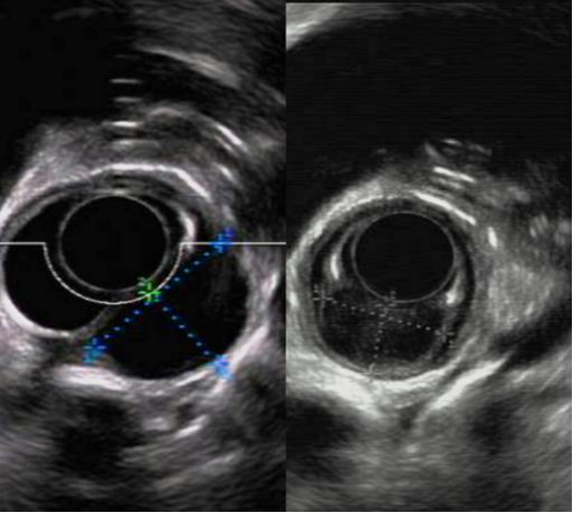在朋友的推荐下,杨先生来到ac米兰官网中文网站一院,经过腔镜肿瘤外科李军教授,消化内科徐洪雨教授及胸外科姜久仰教授等多学科专家会诊。徐洪雨通过超声内镜检查,提出“可以尝试通过内镜黏膜下隧道技术切除肿瘤,而且可以通过一条隧道切除两个肿物”的手术方案。