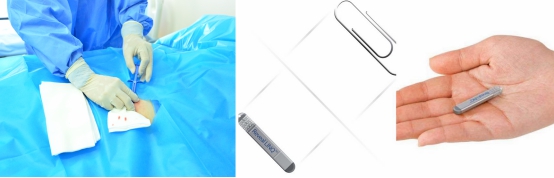 左图:三分钟就顺利将目前最先进的仅有曲别针大小的ICM成功植入