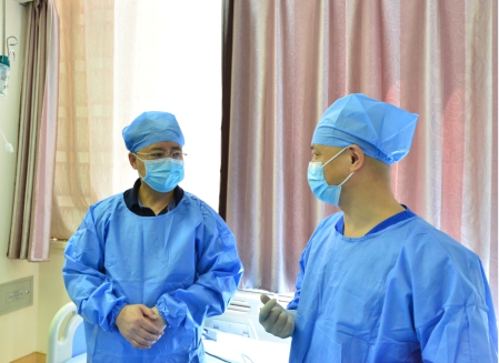 术前,于波教授(左)和李述峰教授(右)对操作过程进行讨论