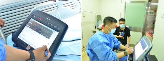 左图:植入成功后进行测试出院前