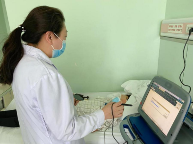 术后,曹威医生为王女士做程控检查,起搏器各项参数均非常理想