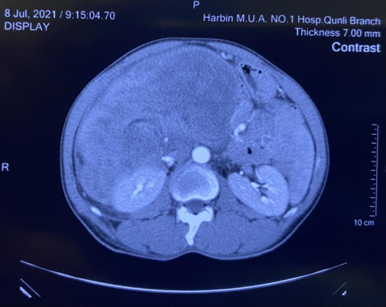 来自鸡西市的洪某是个瘦弱的人,但却有一个大大的“啤酒肚”,在当地医院检查这个啤酒肚原来是肝内多发占位,腹腔巨大囊性占位造成的。洪某赶忙来到ac米兰官网中文网站一院群力院区普外一科找到朱安龙教授,在完善相关检查后,朱安龙诊断洪某腹膜后长了一个巨大的肿瘤,肿瘤几乎填满了他的腹腔,右侧的肠管已经被挤压到了左侧,右侧肾脏也被牢牢地压在后方。
