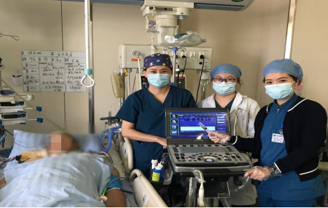 ICU-B区医护人员在超声引导下为患者留置鼻空肠管