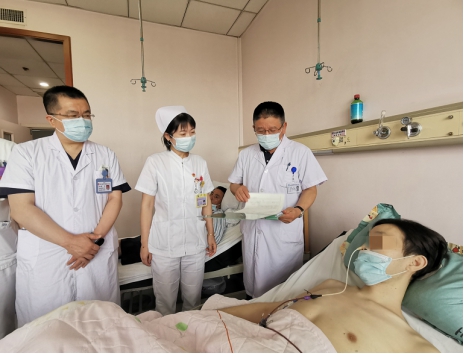 曾兆林教授和护士长张丽莎对患者术后恢复情况进行检查