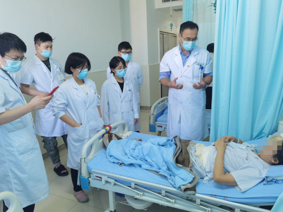 在普外科带头人孙备教授的指导下,普外二科手术团队快速对小井的病情展开评估和分析,初步推断腹膜后肿瘤与原手术病理同源,结合患者复杂的既往病史可能极大增加手术和麻醉风险,以及术后护理难度的种种未知因素,白雪巍团队联合泌尿外科、骨科、血管外科、麻醉科、影像科等学科专家术前进行了缜密周全的多学科会诊,力争确保患者生命安全。