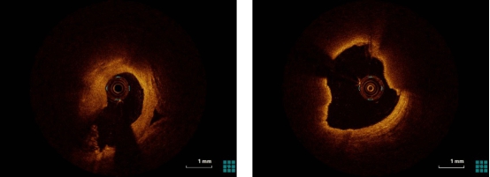 右冠静脉桥血管药物球囊治疗前后OCT影像对比